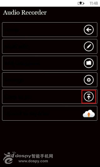 錄制完畢後點擊►按鈕可以播放剛才錄制好的音頻,如果要導出該音頻到電腦上,則需要點擊右下角的→按鈕。