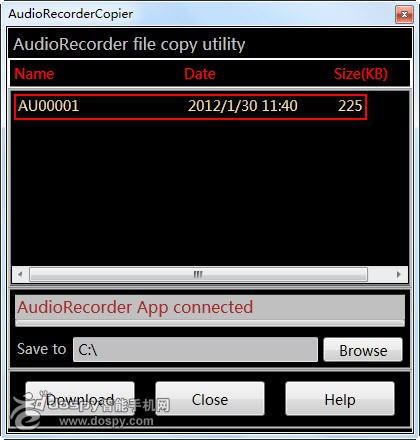 現在我們就可以在電腦端看到音頻文件列表了,還可以看到文件的具體大小,下面的Save to一欄我們可以點擊Browse按鈕來選擇保存到電腦上的哪個文件夾裡。