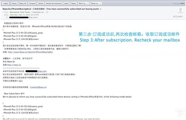 3.一旦有貨,服務器立刻發郵件通知,並附上鏈接。直接可到對應的商店搶購。