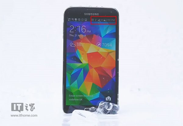 在看過視頻後大家的第一反應就是三星S5在點亮屏幕未解鎖的狀態下接受挑戰,但是事實並非如此。細心的Android用戶可以觀察一下自己的手機,在正常情況下喚醒手機進入鎖屏界面後屏幕亮度只能維持7秒鐘左右,然後就會再度熄屏,因此這段時間不足以三星完成這段本來看上去已經很短的挑戰視頻。但是三星想出了一個辦法,那就是從一開始就用一張鎖屏截圖做背景,這就保證了視頻效果如同全程在鎖屏狀態下完成,但是三星靈敏的屏幕卻把這個看似很機智的想法給搞砸了。冰水澆下後起到了觸摸屏幕的作用,因此顯示實時狀態的通知欄蹦了出來。