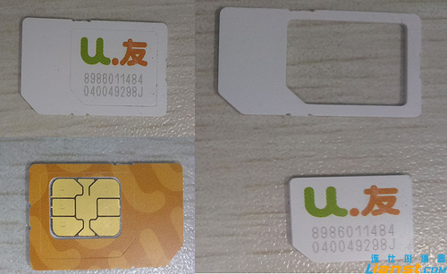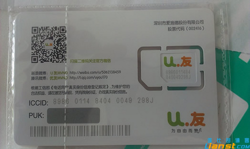 卡的反面是二維碼和U友的新浪、騰訊微博和ICCID、PUK碼之類的一些信息。