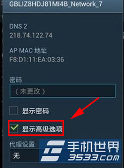 2)點擊【修改網絡配置】,勾選【顯示高級選項】,PS:如是新的WIFI熱點,在提示連接失敗後勾選高級選項。