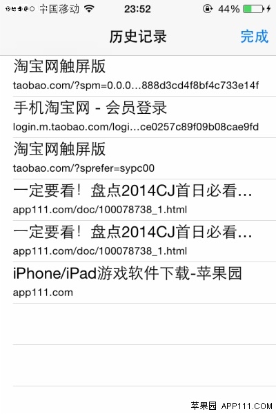 在Safari浏覽界面,點擊左下方的向左箭頭,即可顯示上網的歷史記錄。
