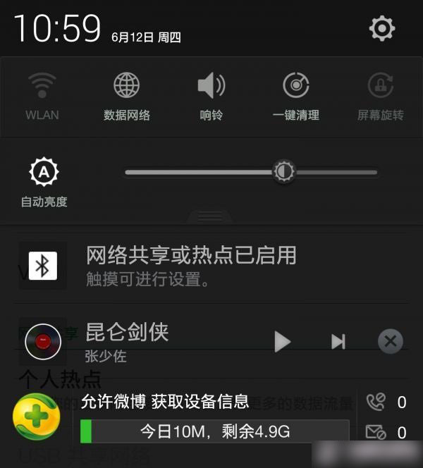 2,配對成功後,請在手機端依次進入“設置→無線和網絡→更多→”,打開“藍牙共享網絡”功能(圖2),此時手機頂部的狀態欄應該會顯示“網絡共享或熱點已啟動”的圖標(圖3),接下來就可進入PC端的設置了。