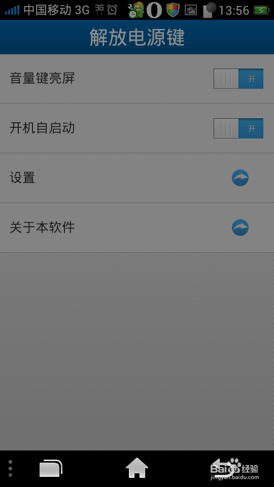 安裝到手機,打開軟件。打開“音量鍵亮屏”和“開機自啟動”。