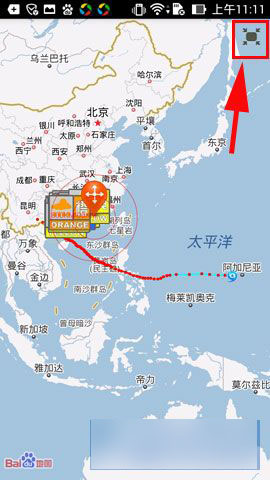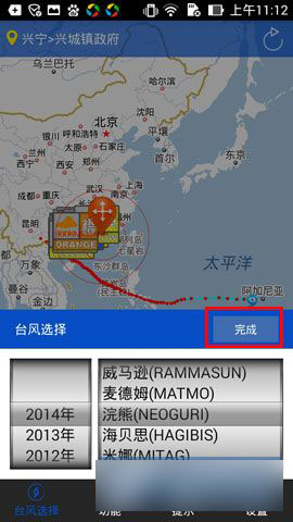 3)選擇完以後點擊小窗口右上角完成,最後大家就會回到地圖界面,大家可以看到自己選擇的台風實時路徑圖了。(如下圖所示)