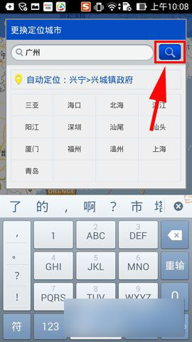5)比如說,小編想搜廣州,就輸入廣州,然後點擊後方【查詢】圖標,點擊以後大家可以看到輸入欄下方有一些信息,點擊大家想要查看的城市。(如下圖所示)