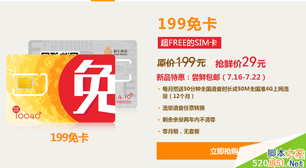 1、登陸蝸牛移動官網,點擊搶購199免卡