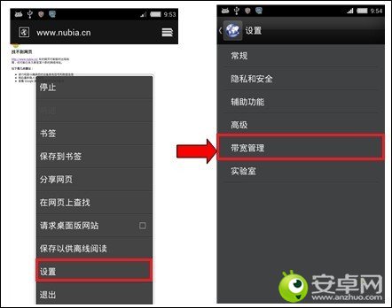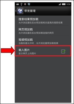 (3) 禁止浏覽器下載圖片:上網過程中下載的大量圖片非常耗費流量。打開浏覽器,選擇“菜單鍵→設置→帶寬管理”,取消勾選【載入圖片】和【視頻播放】選項,可屏蔽網頁中的圖片,達到節省流量的目的;