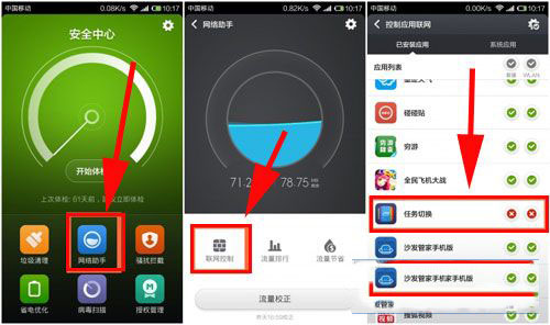 大家可以打開安全中心--網絡助手--聯網控制--找到你需要去除廣告的應用或者游戲--數據及WLAN均點擊打叉。