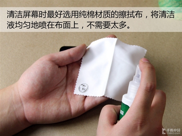 擦屏幕是准備工作中的重要環節,清潔液並不需要噴太多,多了反而會影響擦拭屏幕的效率,有時還會因為屏幕上過於濕潤而沾染灰塵。