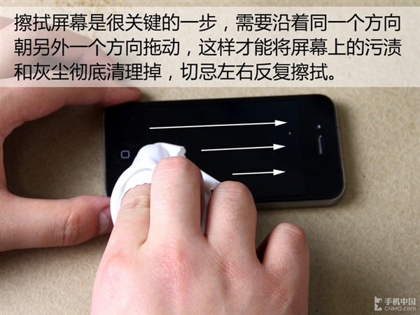 除了清潔液外,擦拭屏幕的手法也需要注意,如果來回拖動的話,很難將屏幕徹底清理干淨,而且還容易留下清潔液的痕跡。