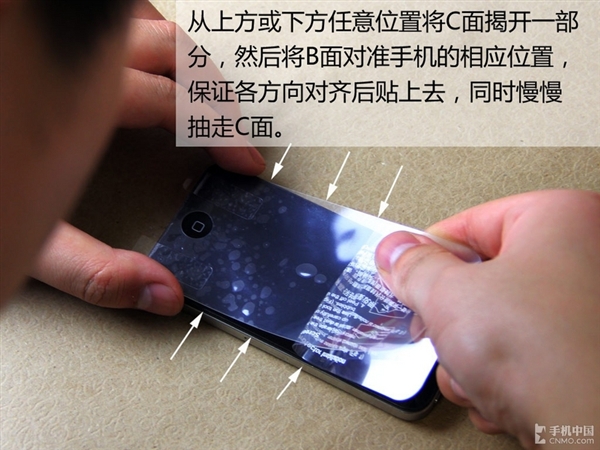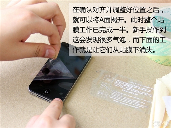 如果是在貼上後才發現錯位的話也不要緊,只需將B面再次揭起來,然後重新比對貼上去就行。在這個過程中,注意不要讓灰塵進入到屏幕和貼膜之間。
