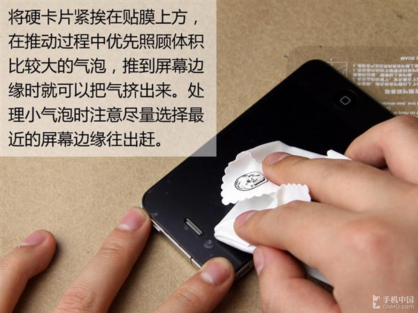 基本每次貼膜都需要趕氣泡,而硬卡片的作用就在於此。相比用手指處理氣泡,平整的硬卡片會讓貼膜受力更加均勻,處理時也會更徹底。