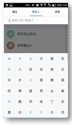 如果手機裡面的聯系人幾百上千位,想找到自己想要聯系的人,不是一件容易的事情。雖然現在的手機基本都有查找的功能,但肯定是沒有樂蛙OS方便的,在通訊錄界面底部,有個姓的提示框,只要點擊,就會出現選擇姓氏的對話框,輕松助你找到聯系人。