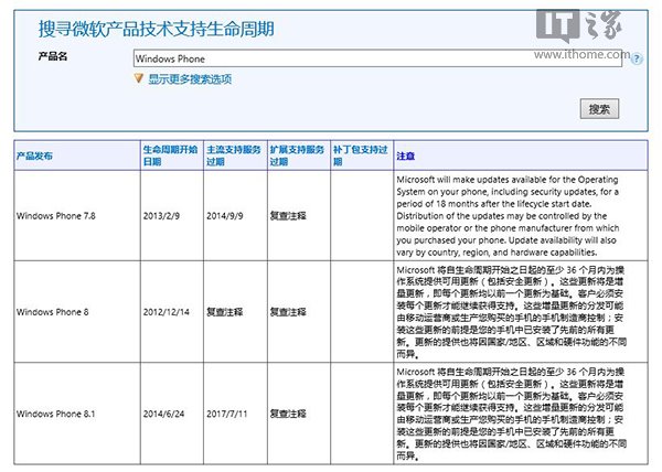 目前,原生WP8.1設備僅限Lumia630/635、Lumia930三款機型,均搭載Lumia Cyan WP8.1最新固件,這也意味著WP8.1生命周期已提前生效。但在微軟產品技術支持生命周期說明書中,WP8.1正式版從今年6月24日開始生效,截止於2017年7月1日,累計36個月的生命周期。