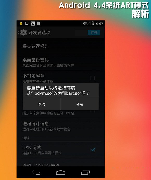 安卓4.4中ART與Dalvik模式可以自由切換。
