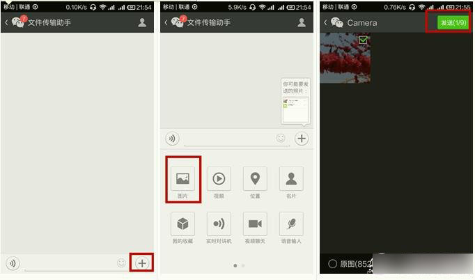 我們可以開始傳輸文件了,單擊+,然後選擇你要傳輸文件,發送就OK啦!