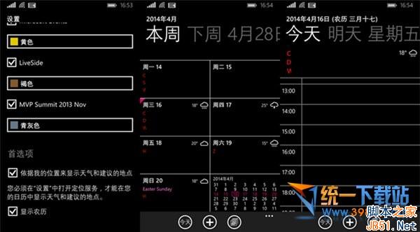 • 日歷設置中的首選項,可以設置打開日歷天氣(需打開位置)和顯示農歷