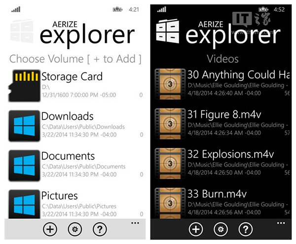 微軟沒有在WP8.1上提供原生的文件管理器,但是不妨礙開發者去開發。Aerize explorer雖然不是文件管理器,但是卻有文件管理功能,並且支持全功能屬性,特別是提供對SD卡的支持。這在WP8系統上是不可想象的。