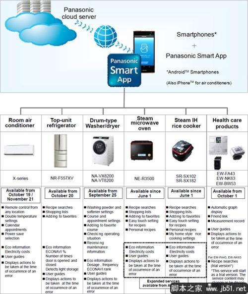 現在支持這個功能的松下電器有電冰箱、洗衣機、空調、微波爐、電飯煲等產品。