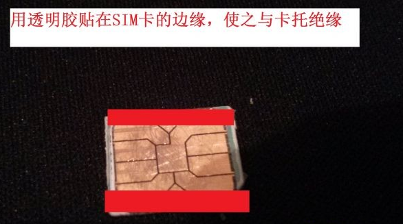 3、按照下圖方法做貼住卡邊緣的金手指,或者到營業廳去換個原裝的Micro SIM卡就OK 了!