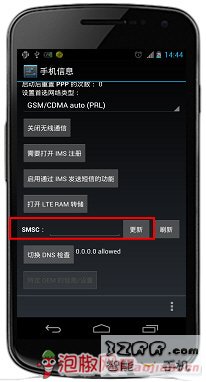 新入日版三太子,刷過ROM後,插入SIM卡,能打電話,能收短信,但就是發不出短信,我知道肯定是短信中心號碼需要設置一下,於是電詢10086(不要從網上搜,以免有誤),我所在本地短信中心號碼為:+8613800551500,以前用過SB和WM系統的機器,短信中心號碼設置非常簡單,第一次用安卓手機,於是憑以前用手機的經驗在手機設置、短信設置裡猛找短信中心號碼配置的地方,死活找不到啊!於是上網搜了一下,發現安卓系統的手機要在工程模式裡設置短信中心號碼,具體是在電話撥號界面輸入:*#*#4636#*#*,如圖(注意:下圖中少一個*):