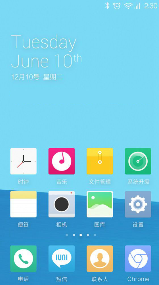 IUNI OS系統是由雪狼團隊的風痕和大盛等大神歷經三個多月打造出來的一款安卓深度定制UI系統,整體風格簡潔、扁平、清新,外觀非常簡潔清新,比較符合大眾的審美傾向,以下我們具體來看看IUNI OS系統界面。