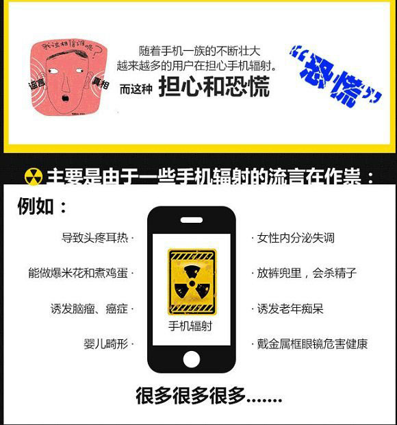隨著手機足的不斷壯大,擔心手機輻射的用戶也越來越多,甚至有不少手機輻射危害傳聞,如手機輻射導致的頭疼耳熱、誘發癌症以及內分泌失調等等,如下圖所示,還有很多很多。