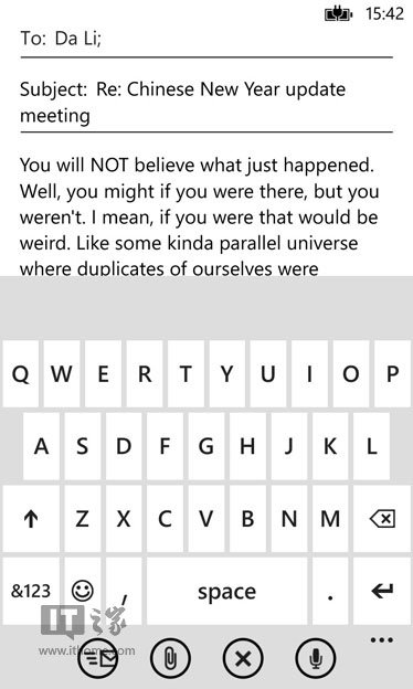 只需要長按WP8設備上的Win鍵,就可以開啟語音輸入功能,例如發送郵件,記錄OneNote筆記等功能。