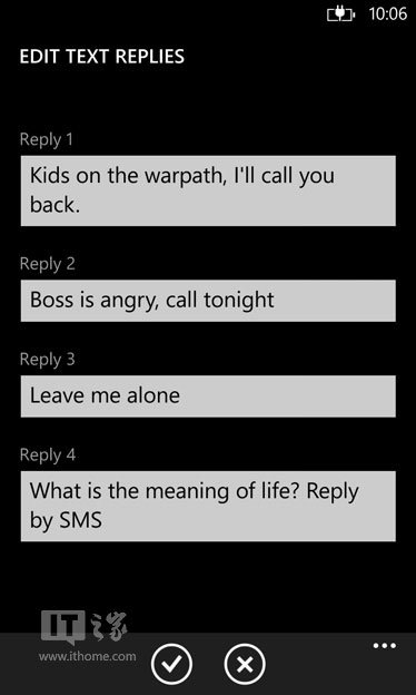 當你在開會時、或者駕車行駛時,這是遇到來電時,WP8可以自動用短信回復對方,稍後聯系。具體操作:進入手機設置,選擇應用程序中的電話,開啟短信回復功能。