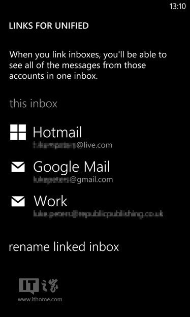 許多用戶都有兩三個郵箱賬戶,這時WP8可以輕松管理這些電子郵箱賬戶,進入系統設置中的“電子郵件+賬戶”,就可以管理多個郵箱賬戶。