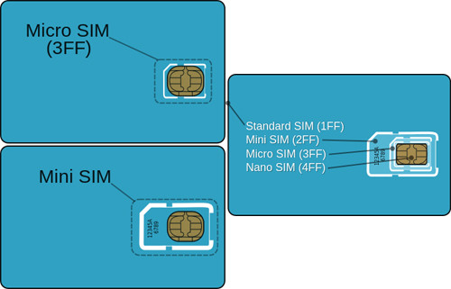 由於手機小型化,目前的SIM卡,又稱“Mini SIM”,一般裁剪為25x15毫米的插入式。發售時一般嵌在一個ID-1型卡中,使用前沿著預制切口取下。