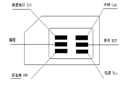 SIM卡在與手機連接時,最少需要5個連接線:電源(Vcc) 、時鐘(CLK) 、數據I/O口(Data) 、復位(RST) 、接地端(GND),如下圖: