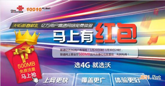 聯通送流量一向很大方,這回也不例外,現在聯通3G用戶只要發送短信“沃4G”到10010就可以獲取2月份免費的500M流量,而且是全國的哦。