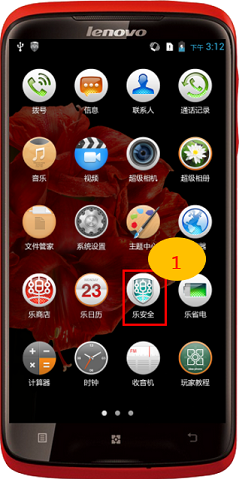 1. 在“應用程序列表”後,找到並點擊“樂安全”,如圖2-1所示;