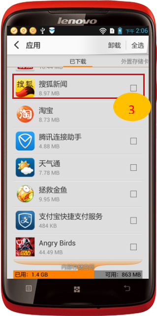 在圖1-4的界面中,選擇需要卸載的應用軟件,然後點擊“卸載”即可;