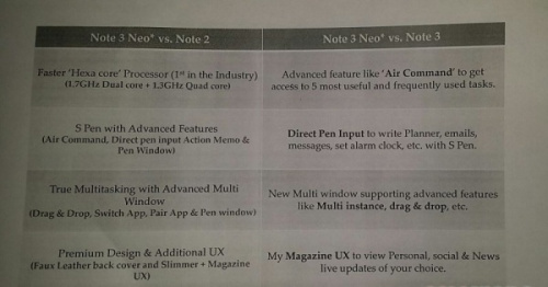 根據曝光的資料顯示三星Galaxy Note 3 Neo將會采用了5.5英寸的720P分辨率AMOLED屏幕,在其內部將會裝備1.7GHz的雙核和1.3GHz的四核的六核Exynos處理器,但是並非是高端處理器。除此之外將會采用800萬像素後置攝像頭和3100mAh的電池。