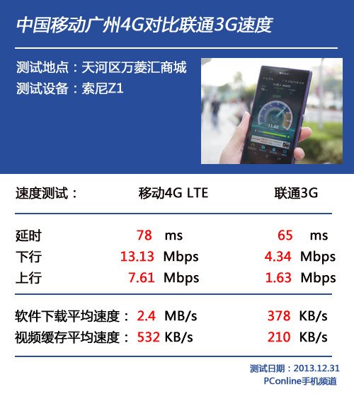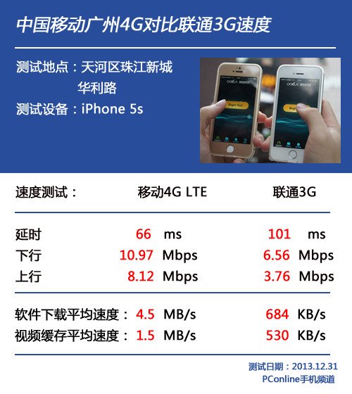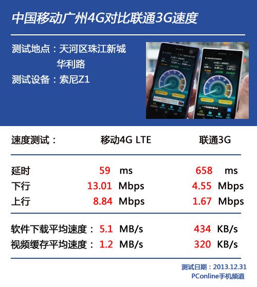 這次我們選取了兩個地點進行兩組的對比,分別采用iPhone5s(移動4G與聯通3G)與索尼Xperia Z1(移動4G與聯通3G)進行對比體驗。除卻純速度的對比之外(網絡測速)之外,最能拉開體驗差距的便是在線視頻的播放和軟件的下載。