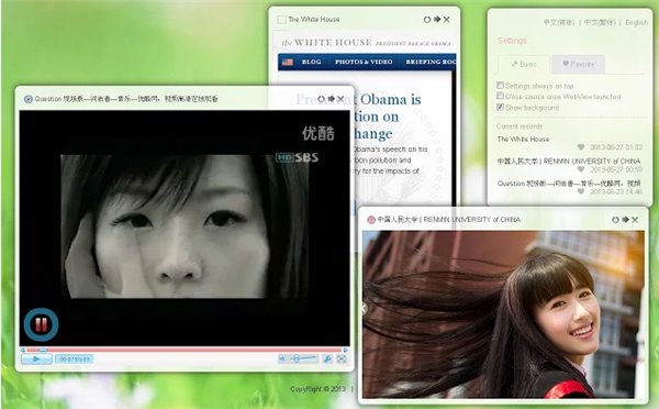 WebView(剪輯收集器):用戶安裝WebView之後其圖標就是一把剪刀,所以它的功能就是讓用戶可以把不同網頁的某個部分剪輯下來匯聚到WebView標簽頁下以方便自己查看。這對於跟蹤搜索某一類信息的用戶還是比較有用的。此外,WebView也支持收藏某些剪輯的標簽頁。