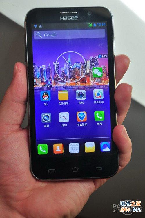 神舟E50正面是一塊5英寸的IPS屏幕,分辨率為1280x720,與榮耀3C的屏幕一樣。機身四角非常圓潤,只是邊框顯得比較闊,總體握持還算比較易掌握。前置攝像頭為500萬像素,與榮耀3C一樣,比紅米的130萬前置像素要高。