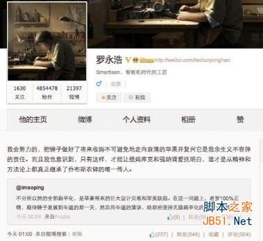 網友@兩只雪納瑞:老羅,你那麼吊,喬布斯知道嗎?