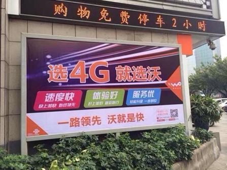 深圳街頭顯示的聯通4G廣告牌