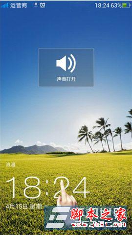 OPPO Find5快速靜音技巧一:只需在Find5鎖屏界面下雙擊時間,然後就出現聲音打開點擊後就會出現聲音關閉。(如下圖所示)