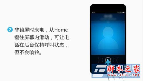 2)非鎖屏來電時從Home鍵按住屏幕內滑動,可以讓電話在後台保持呼叫狀態,但不會響鈴。(如下圖所示)