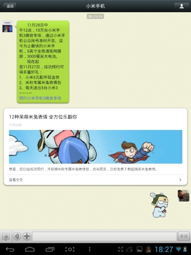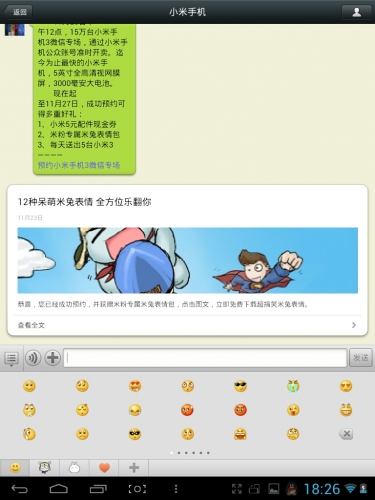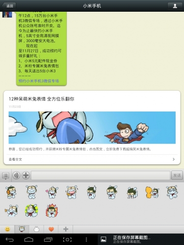 上面的第二條消息,可點擊查看全文,將小米的米粉專屬米兔表情包下載安裝到你的微信表情內,以下為下載過程及下載後的相關展示:
