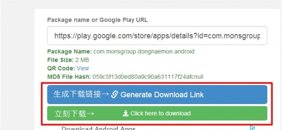 2,在文本框裡輸入目標應用的Play商店鏈接,