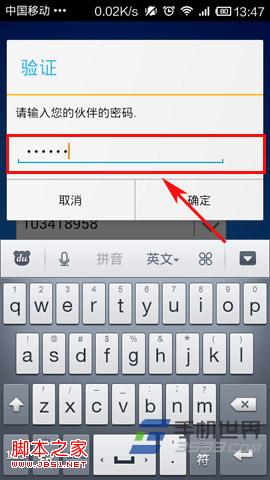 4)待連接成功後會跳轉到輸入密碼驗證界面,這裡的話大家只需要輸入電腦端主界面的密碼欄裡的密碼後點擊確認即可。(如下圖所示)
