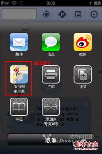 6.能找到一個地圖圖標,名字為“添加為主屏幕”,點擊之。