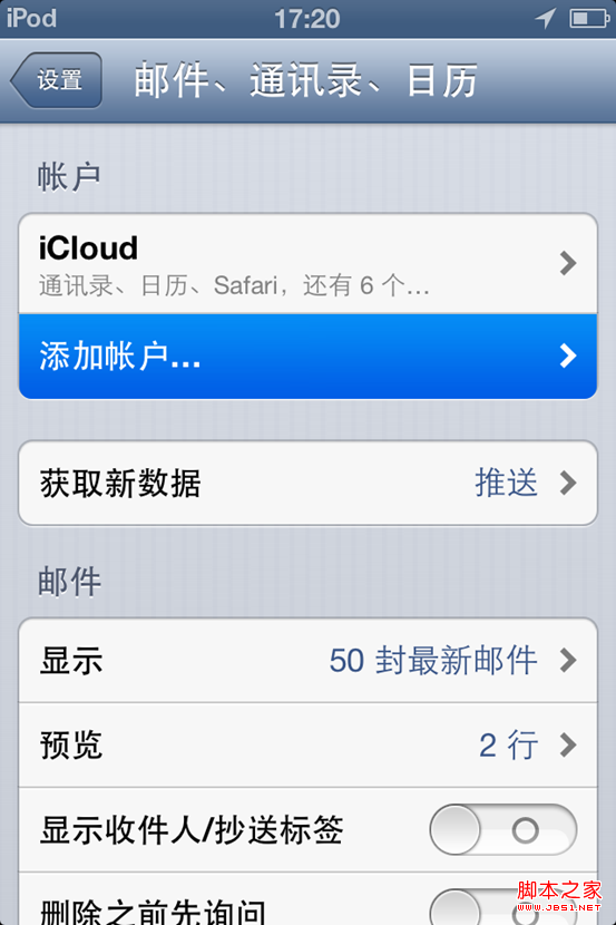 使用郵件功能,您首先要對郵件賬戶進行設置,對於 Mail 和郵件帳戶,請前往“設置”>“郵件、通訊錄、日歷”。您可以設置: